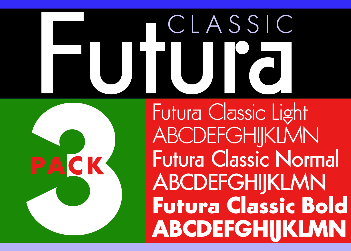 »FUTURA CLASSIC« is a recut of Paul Renners original Futura. This was what Mr. Renner wantedthe Futura to look like. He had to change his very stringent design because the market wanted a more pleasing typeface. I think the original design is worth saving because it is much more typical and has a personal and distinguished touch.